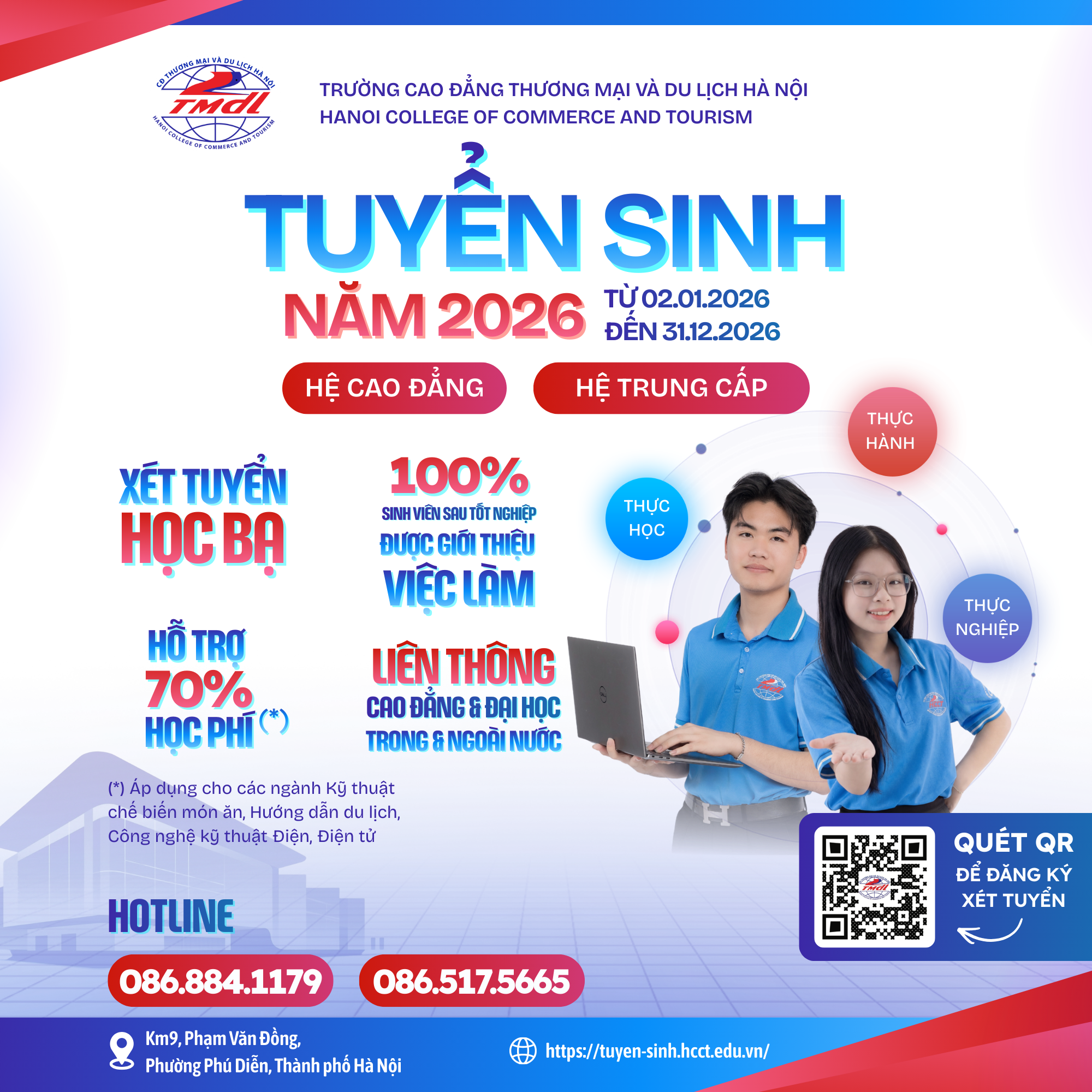 Trường Cao đẳng Thương mại và Du lịch Hà Nội là cơ sở đào tạo đa ngành, đa hệ, liên thông giữa các bậc học; đào tạo bồi dưỡng đội ngũ lao động có trình độ cao đẳng và các trình độ thấp hơn; có sức khỏe, đạo đức, có trách nhiệm nghề nghiệp.