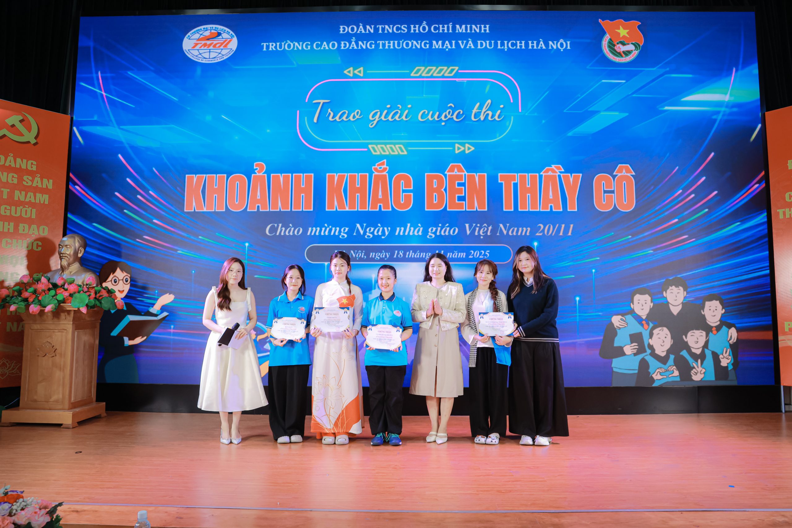 Trong chuỗi các hoạt động của học sinh sinh viên nhằm hướng tới kỷ niệm Ngày Nhà giáo Việt Nam 20/11, trường Cao đẳng Thương mại và Du lịch Hà Nội đã tổ chức cuộc thi “HCCT’s Got Talent 2025” và sáng tạo video “Khoảnh khắc bên thầy/cô”. Hoạt động nhằm tri ân đội ngũ nhà giáo và lan tỏa những khoảnh khắc ý nghĩa trong đời sống học đường. Sau nhiều tuần triển khai, hai cuộc thi đã thu hút đông đảo học sinh, sinh viên tham gia, tạo nên không khí sôi nổi nhưng cũng đầy ấm áp trong toàn trường.