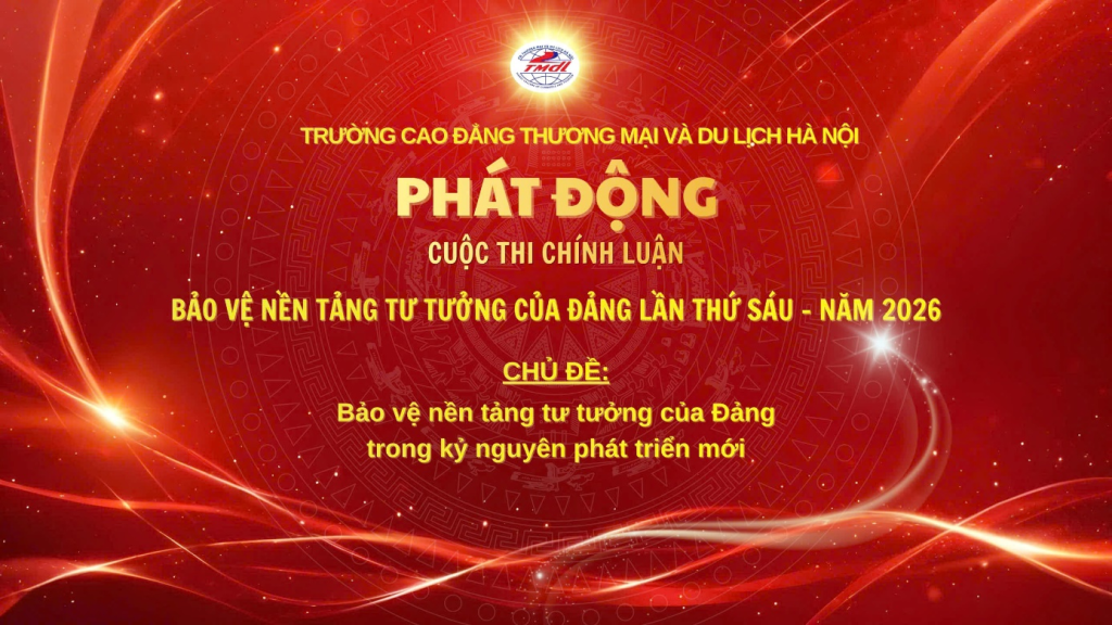 Nhằm triển khai hiệu quả nhiệm vụ bảo vệ nền tảng tư tưởng của Đảng Cộng sản Việt Nam trong tình hình mới, đồng thời nâng cao nhận thức chính trị, tư duy lý luận và khả năng phản biện của học sinh, sinh viên, Trường Cao đẳng Thương mại và Du lịch Hà Nội (HCCT) chính thức phát động Cuộc thi chính luận bảo vệ nền tảng tư tưởng của Đảng lần thứ sáu, năm 2026.