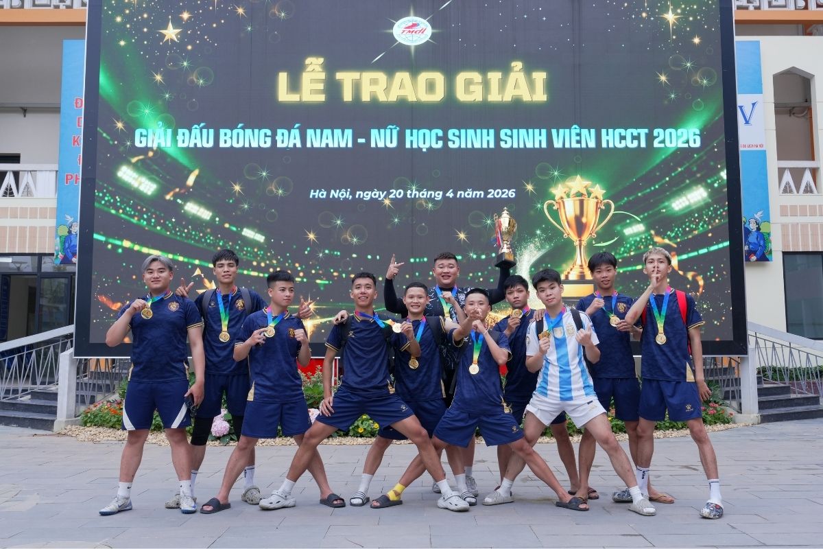 Sáng ngày 20/4/2026, tại sân bóng B5 Mai Dịch, hai trận chung kết bóng đá nam và nữ HCCT 2026 diễn ra sôi nổi và kịch tính. Nhưng giá trị thực sự của giải bóng đá HSSV HCCT 2026 không nằm ở tỷ số, mà ở hành trình sinh viên rèn luyện và trưởng thành. Đây là nơi các em thể hiện bản lĩnh, tư duy chiến thuật, tinh thần đồng đội và khả năng chịu áp lực – những năng lực thiết yếu cho môi trường làm việc sau này.