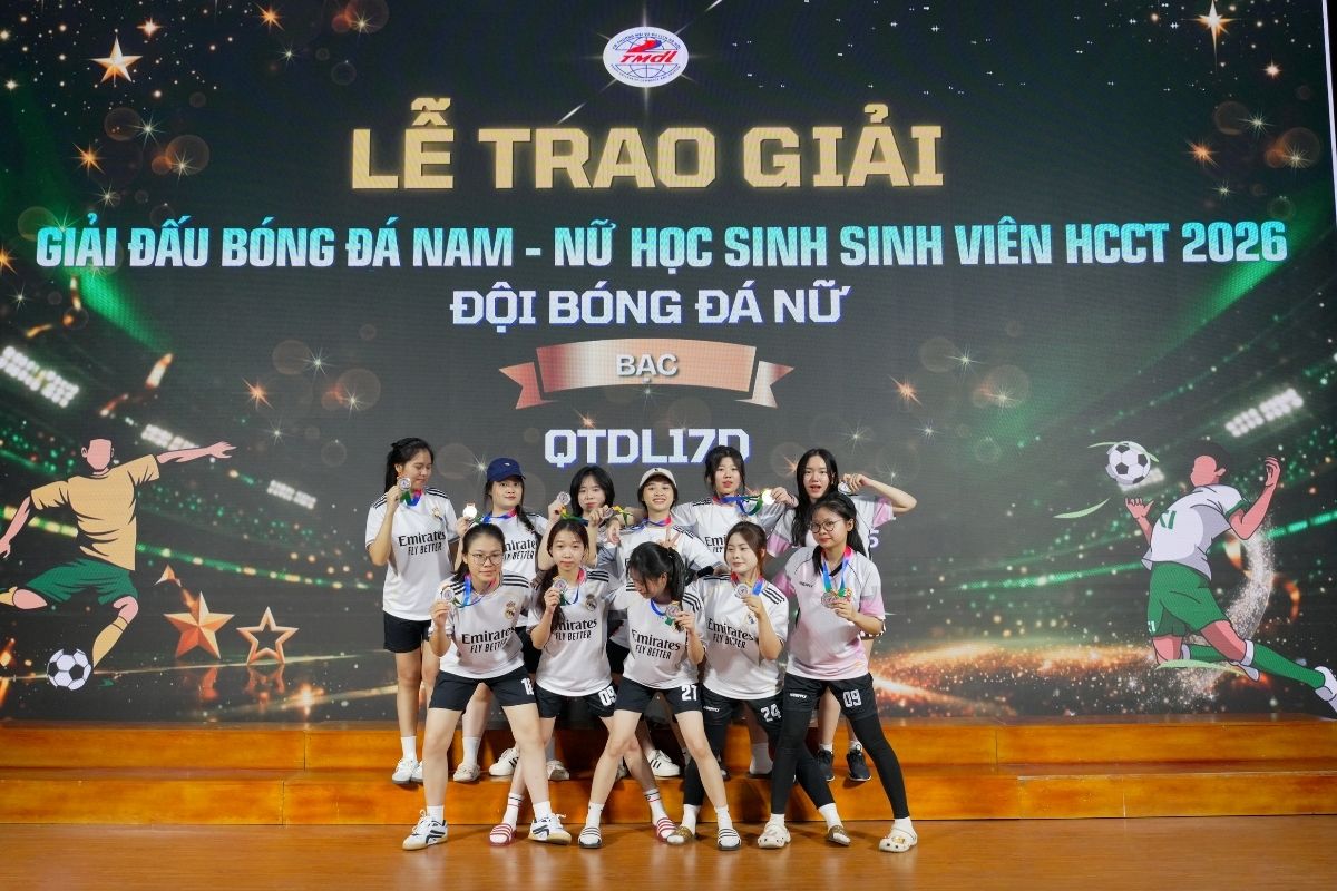 Ngay sau đó, lễ trao giải bóng đá sinh viên HCCT 2026 được tổ chức tại Hội trường A3 với sự tham dự của lãnh đạo Nhà trường, giảng viên và đông đảo sinh viên – khép lại mùa giải trong không khí trang trọng nhưng vẫn rất “cháy”.