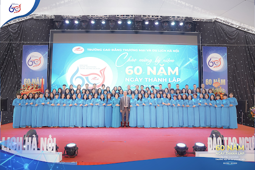 Tập thể cán bộ, viên chức, người lao động trong Lễ kỷ niệm 60 năm ngày thành lập Trường Cao đẳng Thương mại và Du lịch Hà Nội (09/04/1965 – 09/04/2025)