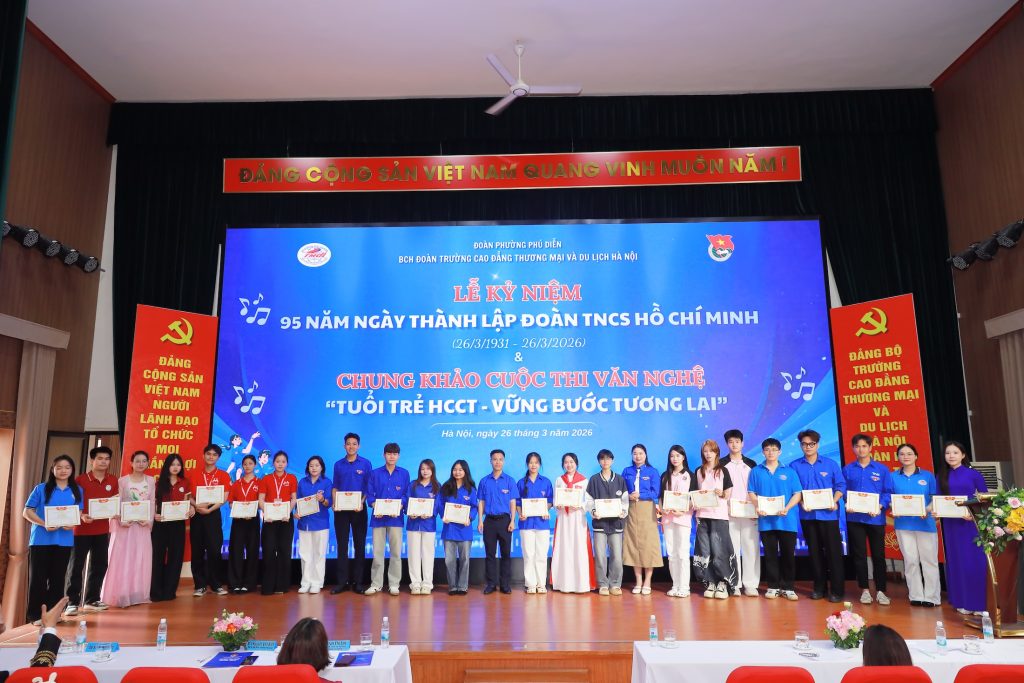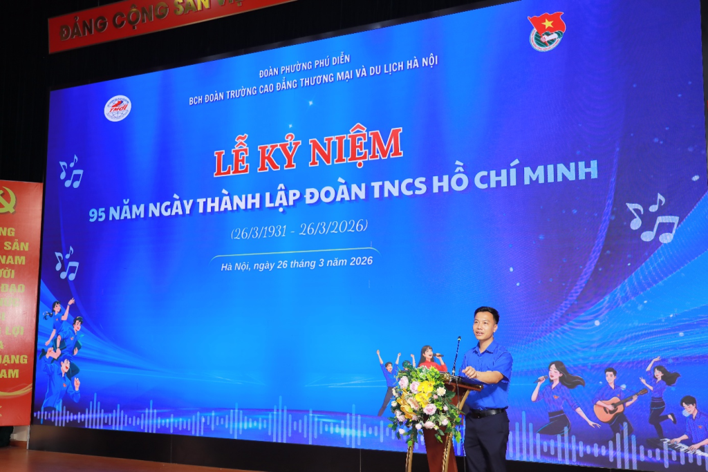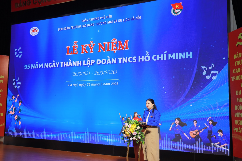 Vừa qua, tại Hội trường A3, Đoàn Thanh niên Trường Cao đẳng Thương mại và Du lịch Hà Nội (HCCT) đã tổ chức thành công Lễ kỷ niệm 95 năm Ngày thành lập Đoàn Thanh niên Cộng sản Hồ Chí Minh – Đoàn TNCS Hồ Chí Minh (26/3/1931 – 26/3/2026) và Vòng Chung khảo Cuộc thi Văn nghệ “Tuổi trẻ HCCT – Vững bước tương lai”. Đây là hoạt động chính trị – tư tưởng có ý nghĩa sâu sắc, góp phần ôn lại truyền thống vẻ vang của tổ chức Đoàn, đồng thời khơi dậy tinh thần trách nhiệm và ý chí phấn đấu trong mỗi đoàn viên, thanh niên nhà trường.