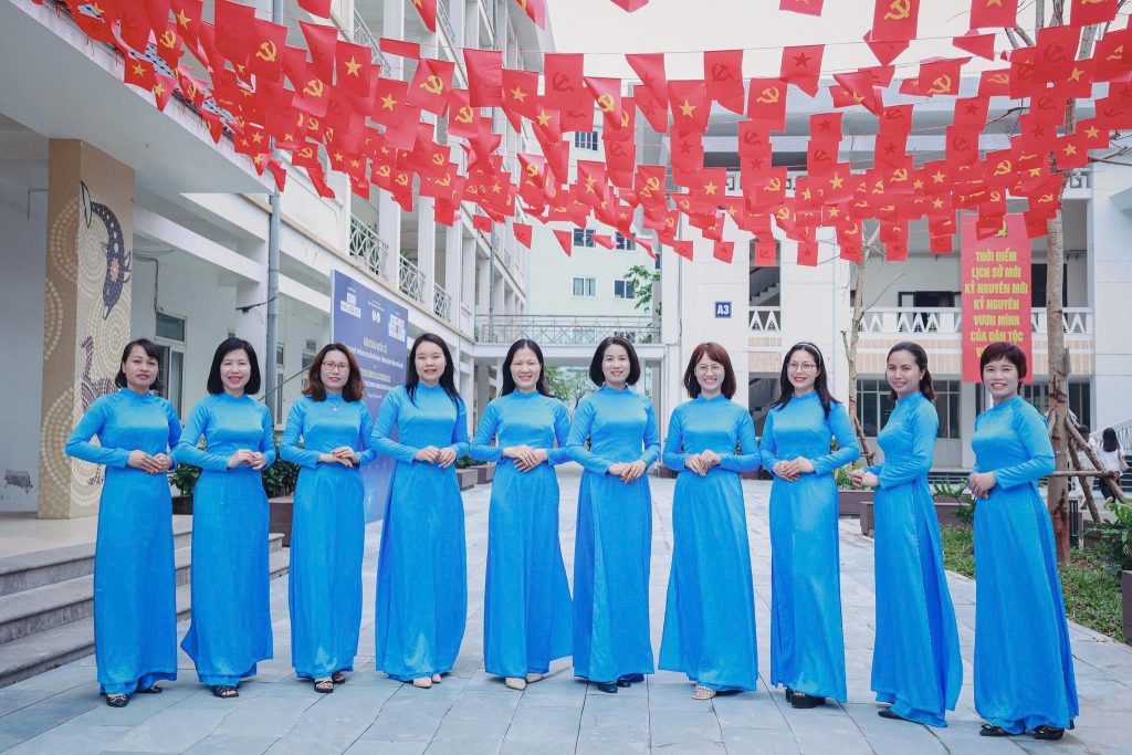 Những nữ cán bộ, giảng viên HCCT trong tà áo dài xanh – biểu tượng của sự dịu dàng, tự tin và chuyên nghiệp