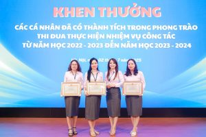 Các nữ cán bộ Trường Cao đẳng Thương mại và Du lịch Hà Nội được tuyên dương vì những thành tích xuất sắc trong phong trào thi đua thực hiện nhiệm vụ công tác giai đoạn 2022–2024