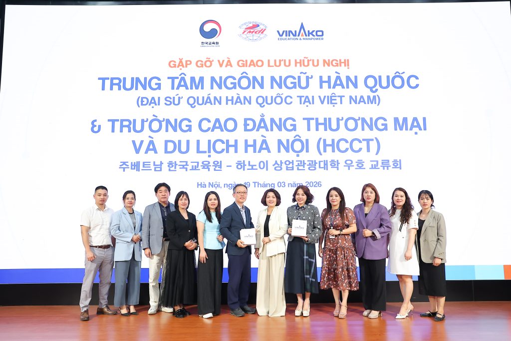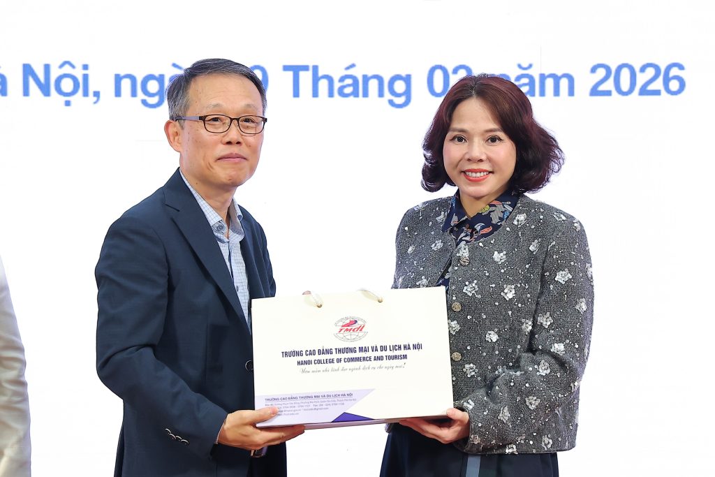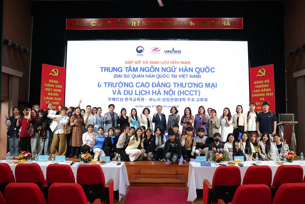 Sáng ngày 19/03/2026, Trường Cao đẳng Thương mại và Du lịch Hà Nội (HCCT) đã có buổi tiếp đón và làm việc trang trọng với đại diện Đại sứ quán Hàn Quốc tại Việt Nam. Sự kiện mang đến nhiều thông tin thiết thực về chính sách giáo dục, mở ra cơ hội học tập và phát triển nghề nghiệp trong môi trường quốc tế cho sinh viên Nhà trường.